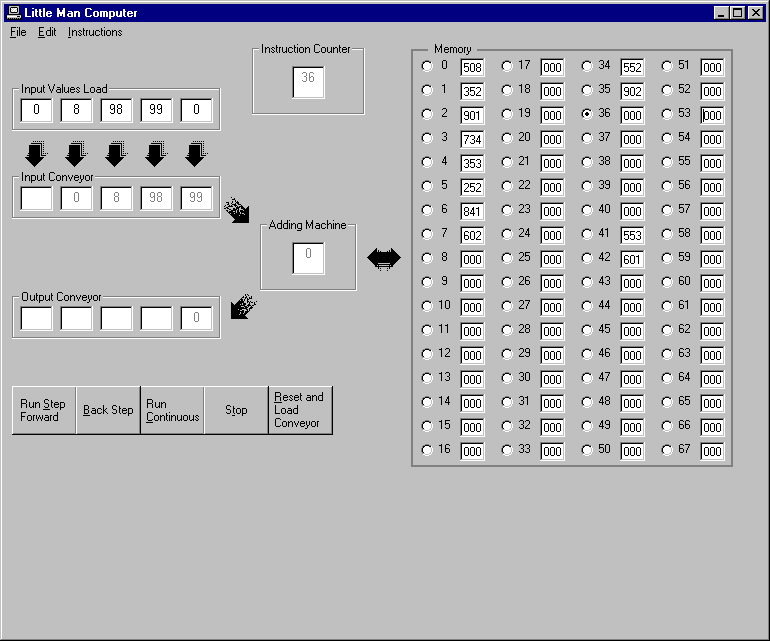 RUN SCREEN (Note: The first number is zero and the program stops right away.)